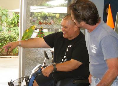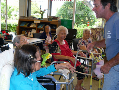 Tony Basco, the son of a resident at Hale Makua Wailuku, frequently takes his beloved pet parrot Amazon in to visit his Dad. While he’s here Amazon brings joy to the residents and sparks a lot of spontaneous curiosity.