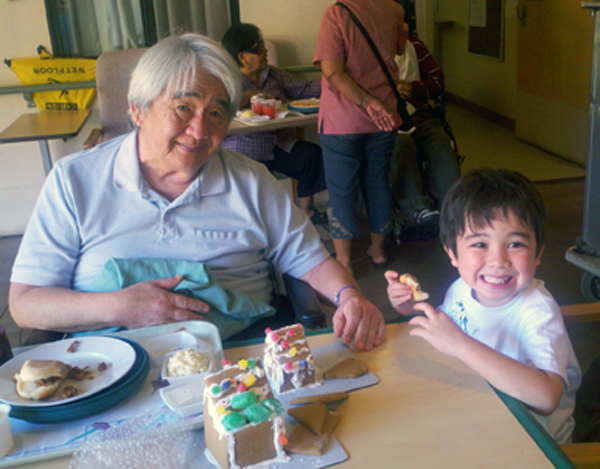 Resident Stephen Harada and his grandson spent some quality time together on Christmas Eve, enjoying lunch and building gingerbread houses.