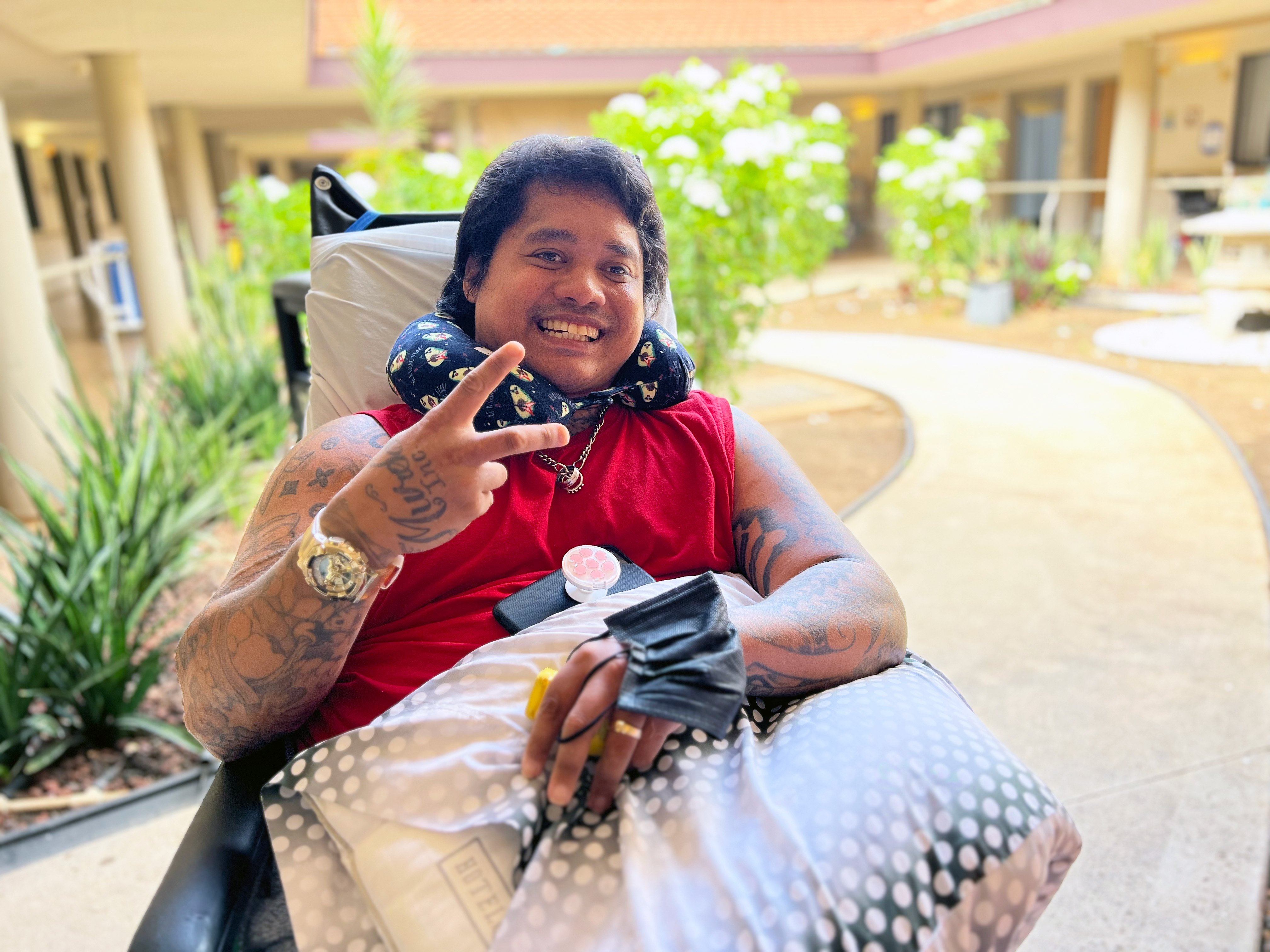 A few years ago, Kingston got into a terrible car accident, and suffered a head injury and became paralyzed. He was taken to Queen’s Medical Center on Oʻahu to receive care before being discharged to Ann Pearl Rehab and Nursing in Kaneohe. After a while, Kingston wanted to return home to Maui.