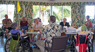 I have to say that it makes me proud and lifts my spirit knowing that I work for an organization where even the CEO takes part in creating meaningful interactions with residents and clients. It isn’t every day that the head of a company takes the time to share his love of music with others. Today the residents of Hale Makua Wailuku’s Molokai Neighborhood were treated to guitar playing and singing by CEO, Tony Krieg.