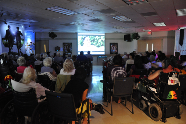 On Friday, March 25th, Hale Makua Kahului held a red carpet premiere event showing of our Luana video. Hale Makua residents, Adult Day Health clients, family members, volunteers, and staff who starred in the video were presented with miniature Oscar-like awards and made their way down the red carpet. In addition to the actors and actresses, family members were invited to this exclusive showing of the Luana video. Shannon Loo and Koa Simarago donated their time and talents to transform the Aloha Cafe into a red carpet affair, and freshly popped popcorn and sparkling apple cider added to the festivities.