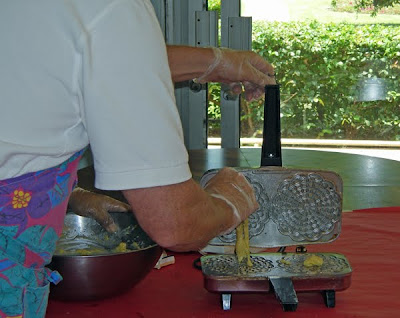 This past Friday we had Bill Prucha, the son of resident Carmela Prucha, join us to make his mother’s Pizzelle recipe. Pizzelles are an Italian tradition; wafer-like cookies with snowflake designs. Bill brought in Carmela’s pizzelle iron which is similar to a waffle iron in appearance. The pizzelle maker is a staple in the household of many Italian families. Making Pizzelles filled the room with the wonderful smells of vanilla and anise. Once cooled the cookies were crispy and melted away in our mouths.