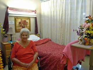 In my previous posting, I shared a photo of resident Helen Oliveira’s newly decorated room, however there have been several residents whose rooms have been redecorated over the last year. The first room belongs to Marge Champlin, who moved into the Ilima Neighborhood at Hale Makua Kahului back in November 2008. When she saw her room for the first time she thought she was staying in a hotel. There were fresh cut roses by her bedside, a beautiful painting hanging above her bed, and touches of vibrant colors throughout her room.