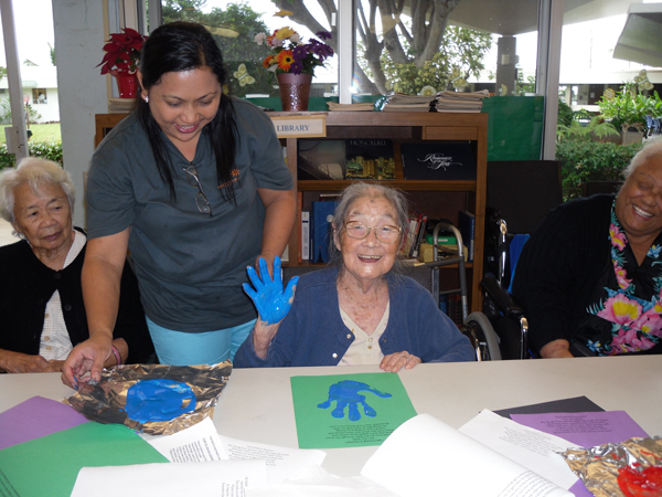 Hale Makua Wailuku residents gathered to start Valentine’s Day cards their loved ones. Their beautifully crafted cards consist of their own hand print and a poem that reads: