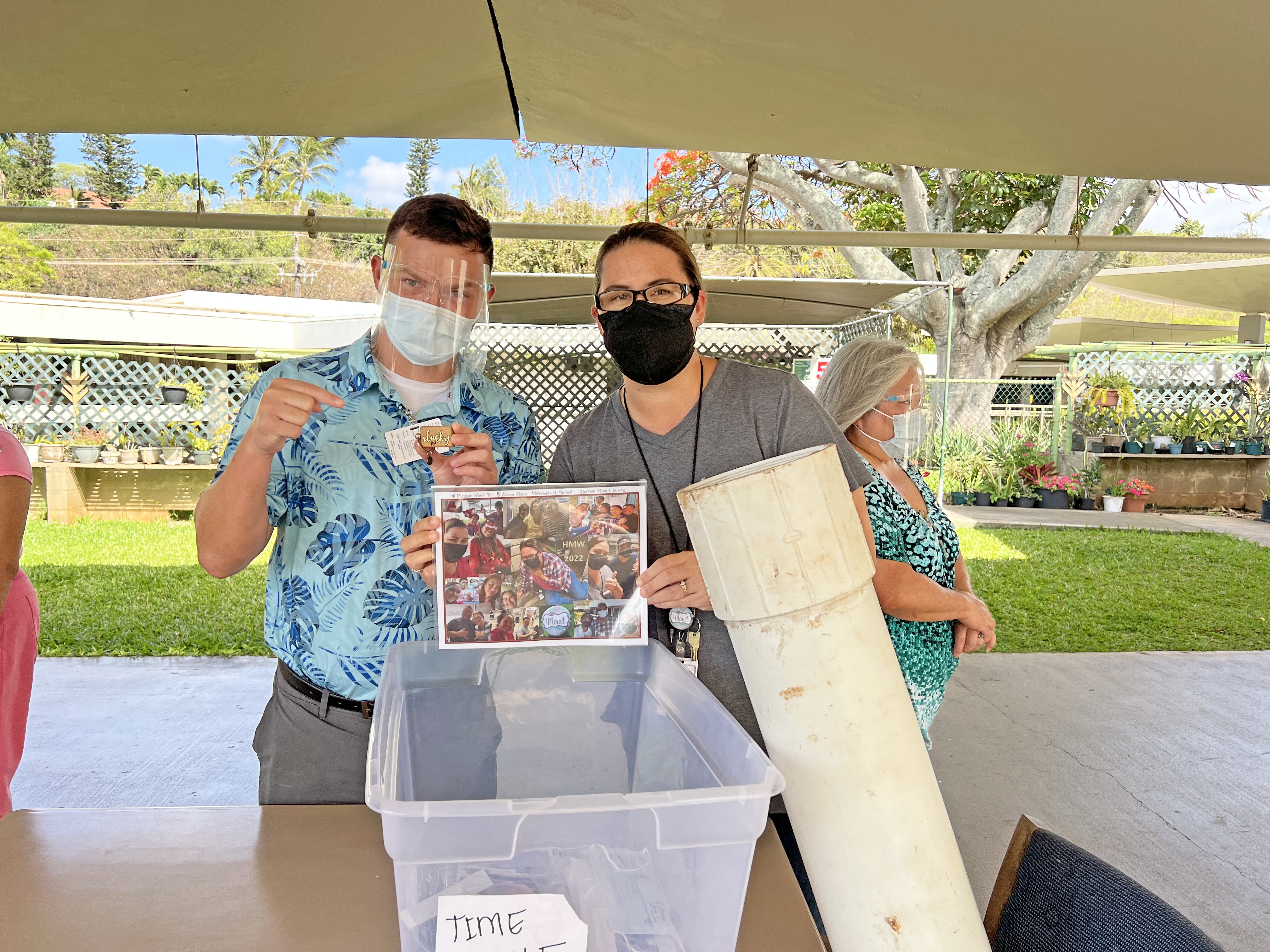 On June 7th, Wailuku staff decided to put together another time capsule. They gathered up items and filled the capsule with new memories from this past year. Some items that were enclosed included a current issue of The Maui News, photos, letters, and a face mask signed by staff to remind those in the future of the pandemic we went through during this period in time.