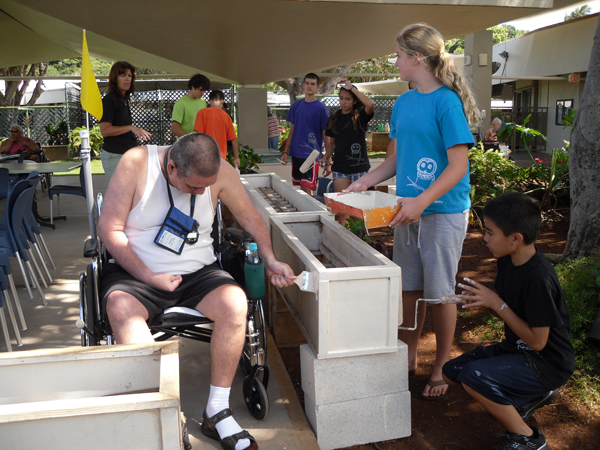 This afternoon students from the Achievement Academy worked with the residents in the Hale Makua Wailuku Garden Club to repaint planters and plant new plants. The Garden Club was developed and is managed by residents. The group meets every Wednesday at 1:30pm.