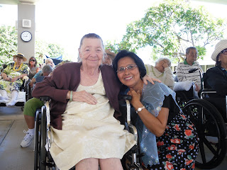 Ethel Vamosi, who lives in our Molokai Neighborhood, enjoys the festivities with Sofia Cabias, RN, Staffing Supervisor.