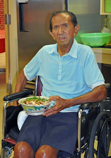 Yesterday I shared a story that spoke about how we can help to nurture the human spirit of the people around us. Whether they be residents, clients, family members, or co-workers. Today I’d like to share a story about what I call “warming the human belly” or filling your tummy with the most onolicious home-cooked food. Yesterday I also had the good fortune to sit in on ethnic cooking with Bruno Wong. Before moving to Hale Makua Bruno was quite the cook. Teresa, our Activities Director, shared that he used to cook dinner for one of his neighbors when they had to work. Bruno told me that this is actually the first time he’s cooked since coming to Hale Makua.