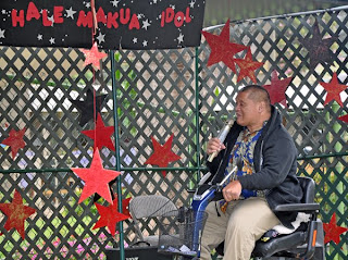 Yesterday afternoon the residents and staff at Hale Makua Wailuku held Hale Makua Idol, a fundraiser for the annual Visitor Industry Charity Walk. Contestants sang their hearts out for the audience and judges, while a few audience members danced along to the tunes and held up signs for their favorite contestants.